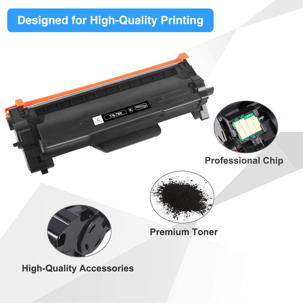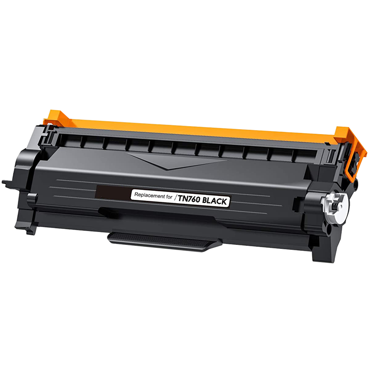 Our compatible Brother TN760 high yield toner cartridge replaces the original OEM Brother TN760. This TN760 toner cartridge prints up to 3000 pages while meeting or exceeding the same print quality as the OEM TN760.